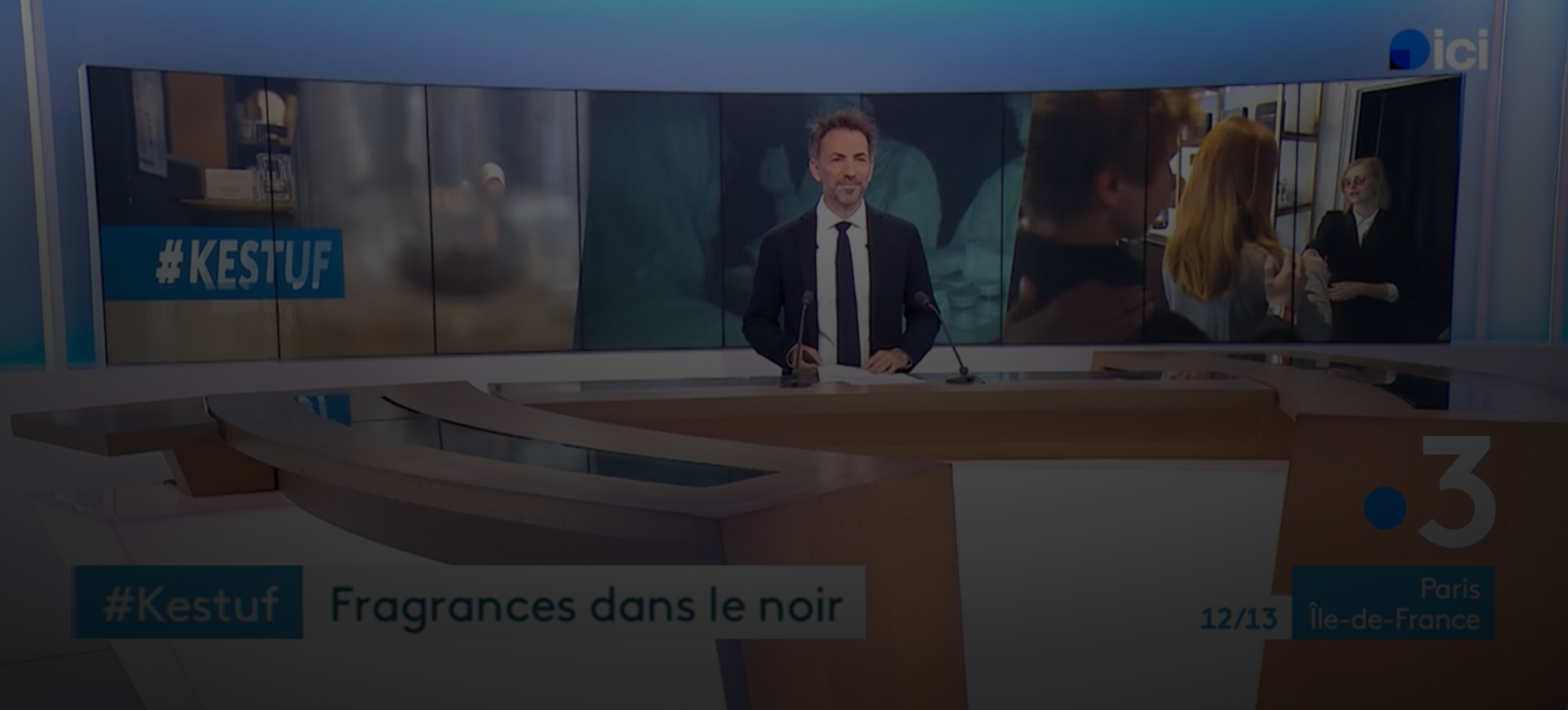 El martes 14 de octubre de 2025, France 3 Île-de-France dedicó un reportaje al universo sensorial Dans le Noir?, sumergiéndose esta vez en nuestro Espacio Sensorial / Boutique de perfume, ubicado en el 40 rue Quincampoix de París.